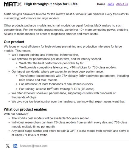 はじめに Xの投稿に流れてきた MatX という会社。 Ex-Google chip designers have launched startup MatX to develop AI chips specifically for LLMs, Bloomberg reports. “Inside of Google, there were lots of people who wanted changes to the chips f…