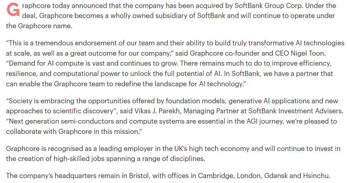 かなり前から Graphcore を Softbank Groupが買収するという話が出ていましたが、やっと Graphcore から公式発表がありました。