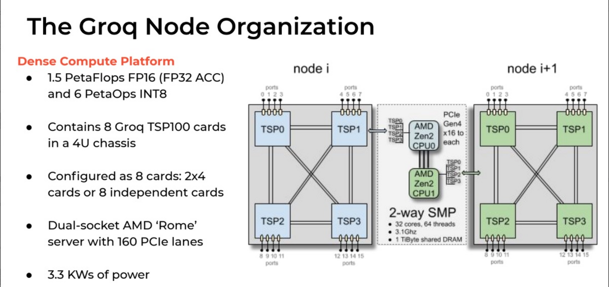 下図をThe Nextplatform の記事 (Groq Shares Recipe for TSP Nodes, Systemsから説明のために引用します。