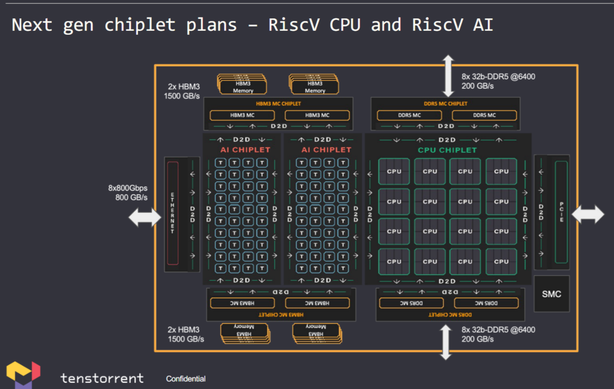 NVIDIAが Grace + Hopper、Grace + Blackwell にて、CPUとGPUを統合していますが、Tenstorrentは、chiplet という形でそれを実現しようとしています。 (先日、NVIDIAはGB10を発表しました。このブログを書いた時は、まだ発表していませんでした)